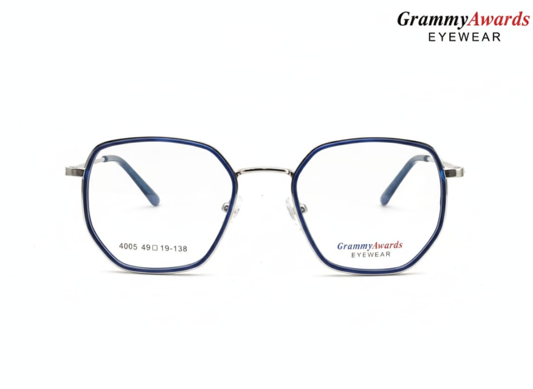 These stylish GrammyAwards Eyewear glasses feature a unique multi color hexagonal full-rim metal frame, suitable for both men and women. They offer a fashionable, modern look and are ideal as prescription glasses or anti-blue light computer glasses. The frame measurements are 49-19-138